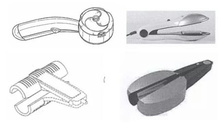本案中,从多方采集的现有设计可以看出,卷发器通常由卷发部分和手柄组成,卷发部分用于头发造型,手柄部分用以握持,可以开合,手柄部分略长于卷发部分,卷发部分和手柄部分可以具有多种造型,两部分在满足功能需要的条件下都有一定的设计空间;将涉案专利与对比设计的卷发器放在评价报告和双方当事人提交材料的背景中进行考察,可以发现,两者的相同点部分在现有设计的背景材料中没有体现,即两者的整体形状、连接方式以及各部分的整体形状属于对整体视觉效果具有显著影响的设计;现有设计状况中可以看出,按键通常设置于手柄部分,可以为推拨设计,手柄尾部设有电源线,电话线与手柄有可以为一条直线也可以存有一定角度,属于卷发器类产品的惯常设计;长方形推拨式调节键属于在现有设计中也较为常见。